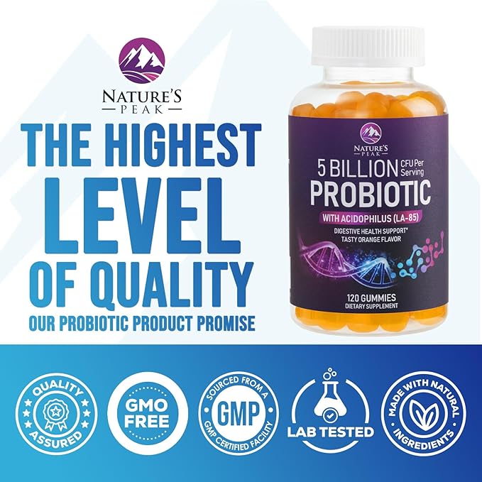 - PROBIOTIC GUMMIES SUPPLEMENT: Best 5 billion cfu chewable pro biotic gummy natures peak daily multi enzyme probiotics for women men kids child adults digestive gut health immune support supplements with lactobacillus acidophilus bifidobacterium probioticos mujer biotics vaginal capsules pills vag probotics vegan chews natural 10 50 60 formulated nutritional raw