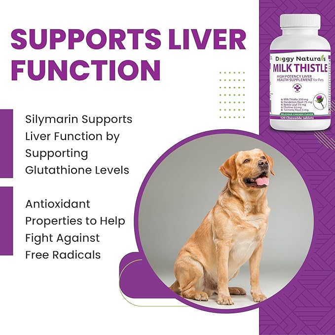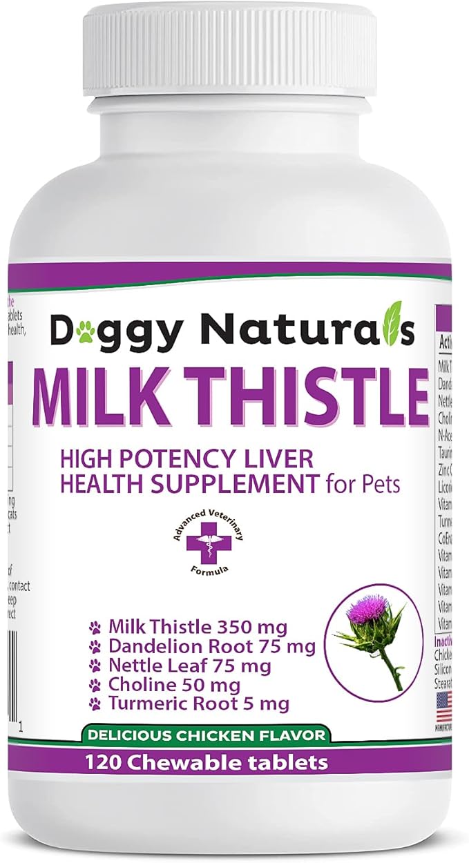 Milk Thistle for Dogs with High Potency Liver Health Supplement for Pets (120 tabs)