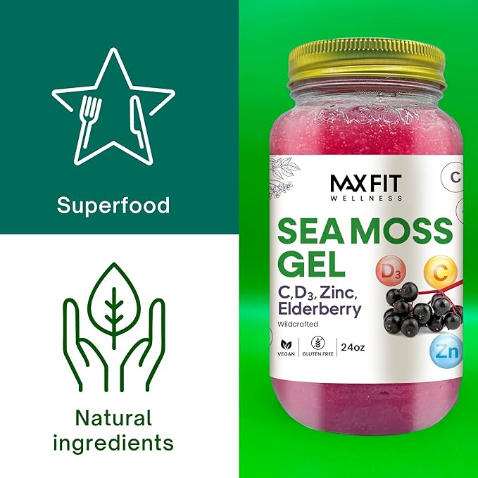 Sea Moss Gel Elderberry Vitamins 24oz Wildсrafted Gold Sea Moss Gel from Saint Lucia | 92 Vitamins and Minerals | Pure Raw+Non-GMO