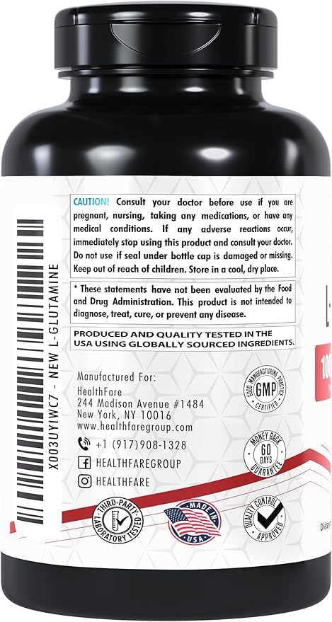 - POTENT FORMULA: Each capsule contains 1000mg of L-Glutamine, a key amino acid known for its support in gut and muscle health.