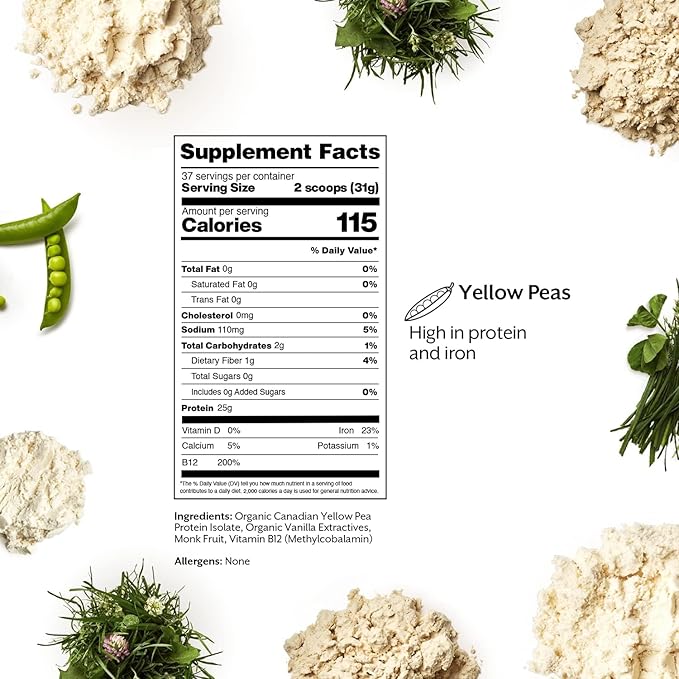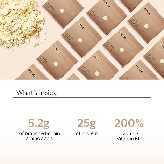 - What’s Inside: Our Vegan Protein Powder is packed with 25g of protein and 5.2g of branched-chain amino acids per serving. 200% of your Daily Value of Vitamin B12 in every serving.