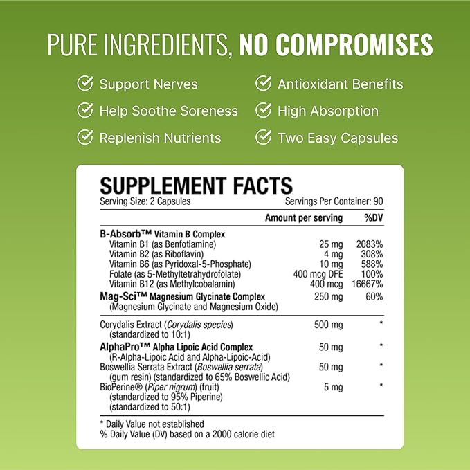 - Unique Formula - Nervprin contains a collection of key ingredients including three trademarked blends: B-Absorb Vitamin B Complex, Mag-Sci Magnesium Complex, and AlphaPro Alpha Lipoic Acid Complex.