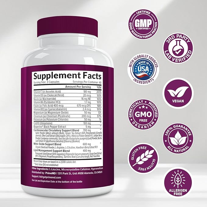 26-in-1 Nitric Oxide Supplement - Heart & Circulation Support with CoQ10, Turmeric, Organic Beet Root, Hawthorn Berry & Garlic - 2103mg per Serving (120ct)