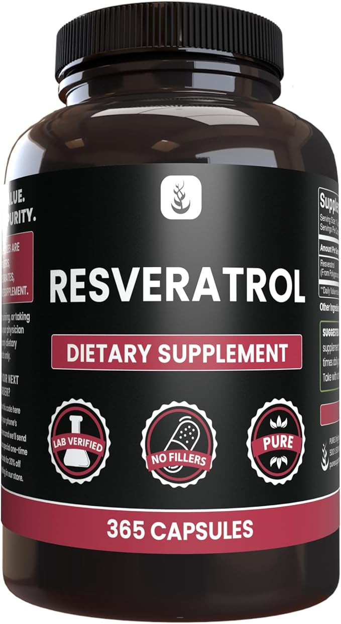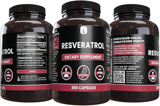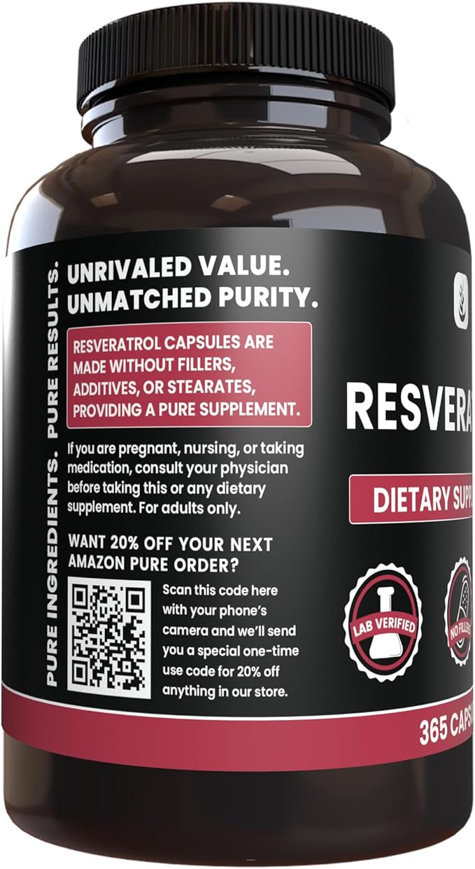 PURE ORIGINAL INGREDIENTS Resveratrol, (365 Capsules) No Magnesium Or Rice Fillers, Always Pure, Lab Verified