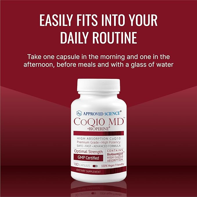 Approved Science® CoQ10 MD - Extra Strength 300mg Pure CoQ10 with BioPerine® for Faster Absorption - Optimal Support - 6 Month Supply