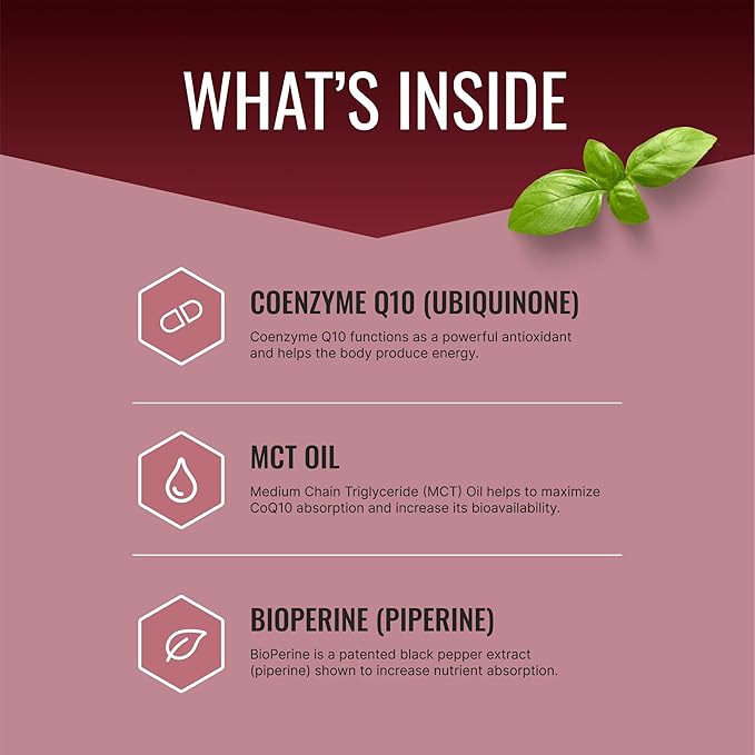 - FASTER ABSOPRTION - We include Bioperine for increased bioavailability of Coenzyme Q10, so you can experience the potential benefits sooner.