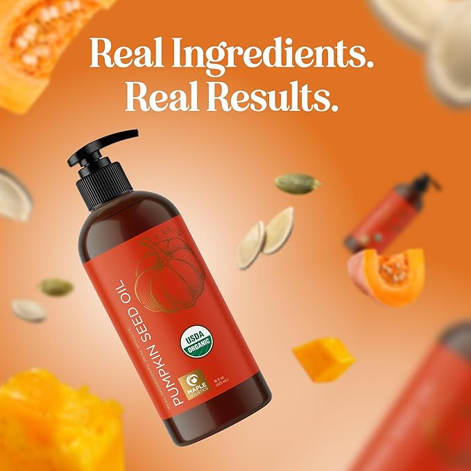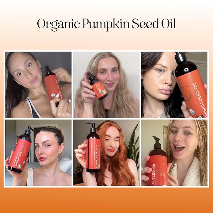 Pumpkin Seed Oil Organic Certified - 100% Pure Organic Pumpkin Seed Oil for Hair and Anti Aging Face Oil - USDA Organic Hair Oil for Dry Hair and Volume - Virgin Cold Pressed & Unrefined (16oz)