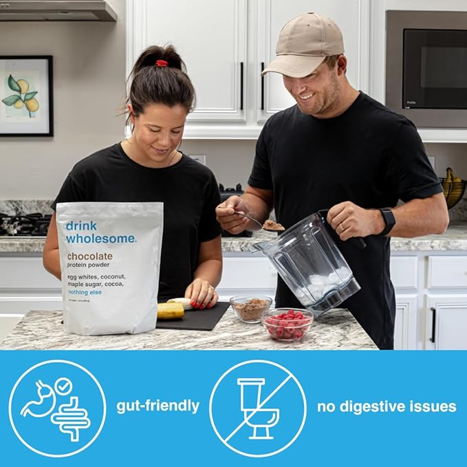 drink wholesome Chocolate Maple Egg White Protein Powder | for Sensitive Stomachs | Gut Friendly | Additive & Dairy Free | No Artificial Sweeteners | No Bloating or Gas | No Constipation or Diarrhea