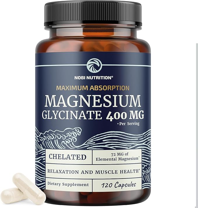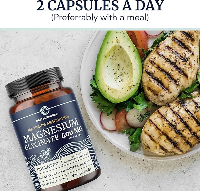 - SMALL CHELATED CAPSULES: Nobi’s small, 2-capsule servings of magnesium glycinate supplement are flavorless and easy to swallow. Each serving yields 400 mg of highly-absorbable magnesium, and each bottle contains 120 magnesium glycinate capsules.