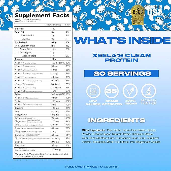 - High-quality plant-based protein: Xeela's premium protein offers a healthy, lean, plant-based protein source to enhance your daily nutrition routine with refined taste, mixability, and texture.