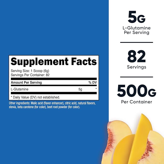 - NSF Certified & GMP Compliant: Rest assured that each batch of Nutricost's Peach Mango L-Glutamine Powder is manufactured in an NSF certified and GMP compliant facility, maintaining the highest quality standards.