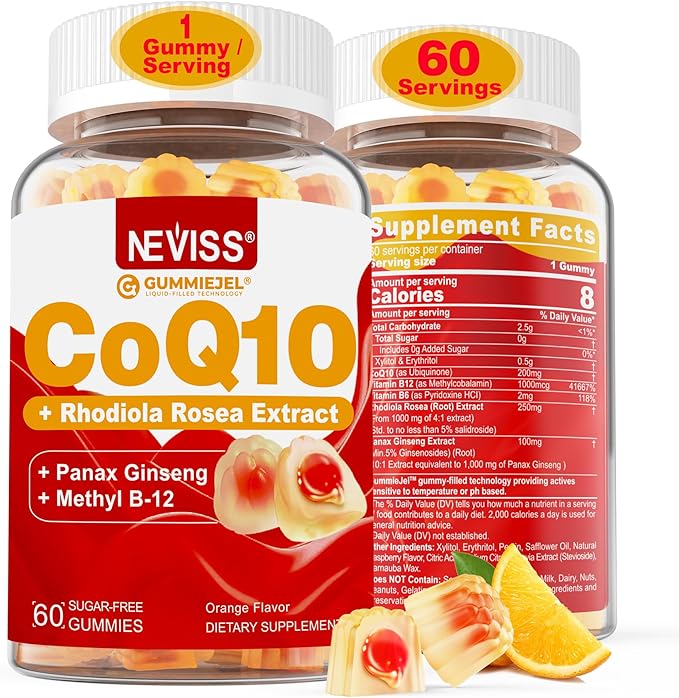 Sugar Free CoQ10-200mg 400mg Filled Gummies - 2 Months Supply - w/ Vitamin B12 1000mcg, Rhodiola Rosea & Panax Ginseng, B6, Coenzyme Q10 Supplement for Hear-t, Energy, Antioxidant, Ultra Absorption