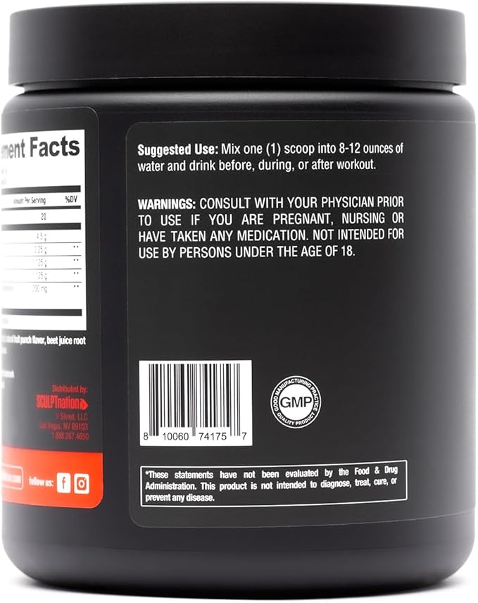 Sculpt Nation by V Shred BCAA Powder - Powerful Amino Acids Blend to Support Recovery and Endurance, Branch Chain Essential Amino Acids, Fruit Punch - 30 Servings