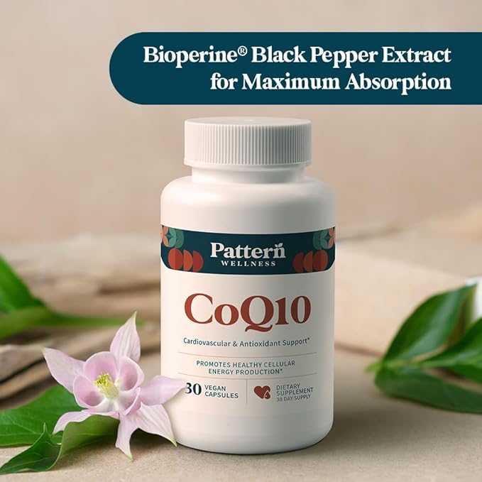 - Flavor : Pattern Wellness CoQ10-200mg Ubiquinone with Bioperine Black Pepper Extract - Cardiovascular & Cellular Energy Production Support - Non-GMO - 30 Vegan Capsules Pattern Wellness CoQ10-200mg Ubiquinone with Bioperine Black Pepper Extract - Cardiovascular & Cellular Energy Production Support - Non-GMO - 30 Vegan Capsules