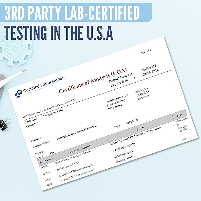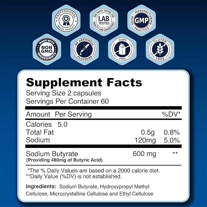 - NATURALLY SOURCED & LAB TESTED FOR QUALITY: Our Sodium Butyrate gut health supplement is made from high-quality, naturally sourced ingredients and independently lab-tested for purity, so you can trust you're getting a premium product without unnecessary additives.