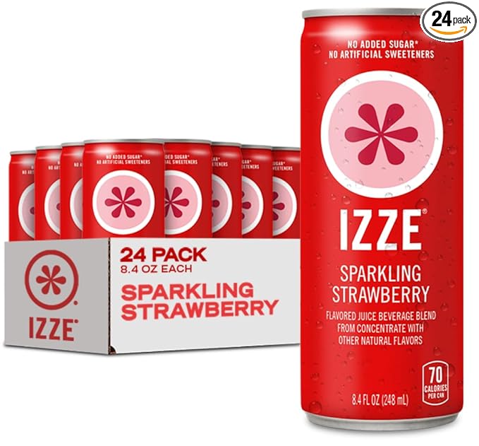 - Make your taste buds dance – IZZE Strawberry Sparkling Juice beverage blend is a bubbly burst of sweet juicy strawberrry with gravity-defying fizz and comes in a 24 pack of 8.4 FL OZ cans that are easy to take with you and easy to recycle