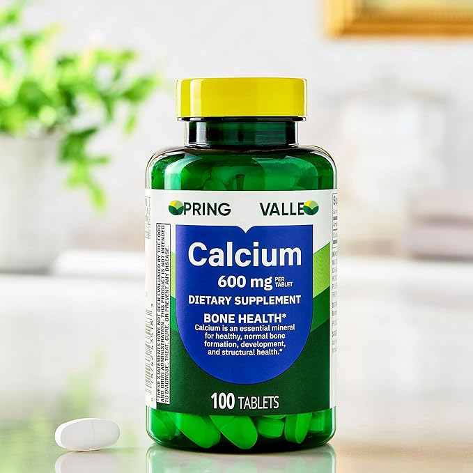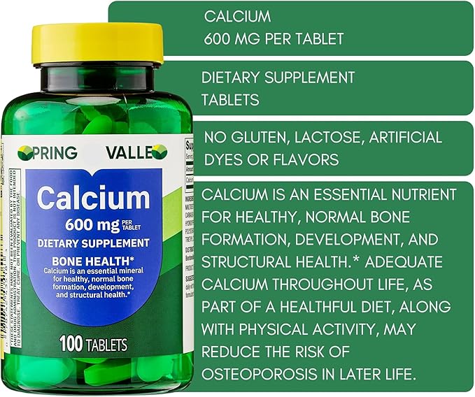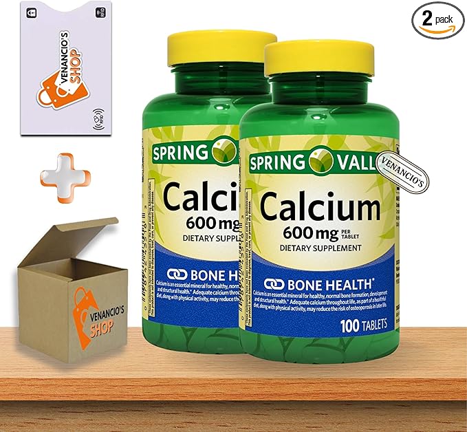 Calcium 600 mg Tablets • Bone & Muscle Health • Supports Strong Bones • Dietary Supplement • 100 Count by Spring Valley + Vena’s Sticker(Pack of 2)