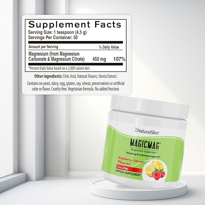 - Essential Magnesium Support – The tasty NaturalSlim MagicMag magnesium supplement contains magnesium citrate, carbonate, and citric acid for better rest. It also supports general health and optimal magnesium levels for daily vitality.