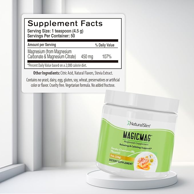 - Essential Magnesium Support – The tasty NaturalSlim MagicMag magnesium supplement contains magnesium citrate, carbonate, and citric acid for better rest. It also supports general health and optimal magnesium levels for daily vitality.