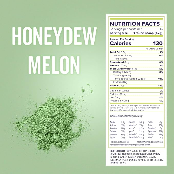 Boba Tea Protein Whey Protein Isolate (Honeydew Melon), 5.9g BCAAs, Gluten Free, Low Sugar, Bubble Tea Protein Powder