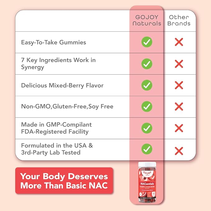 GOJOY 7-in-1 Sugar-Free NAC Gummies – NACsentials 600mg N-Acetyl Cysteine with Vitamin C, ALA, Quercetin & Astaxanthin – Antioxidant & Liver Detox Support – Vegan & Keto-Friendly – 60 Gummies