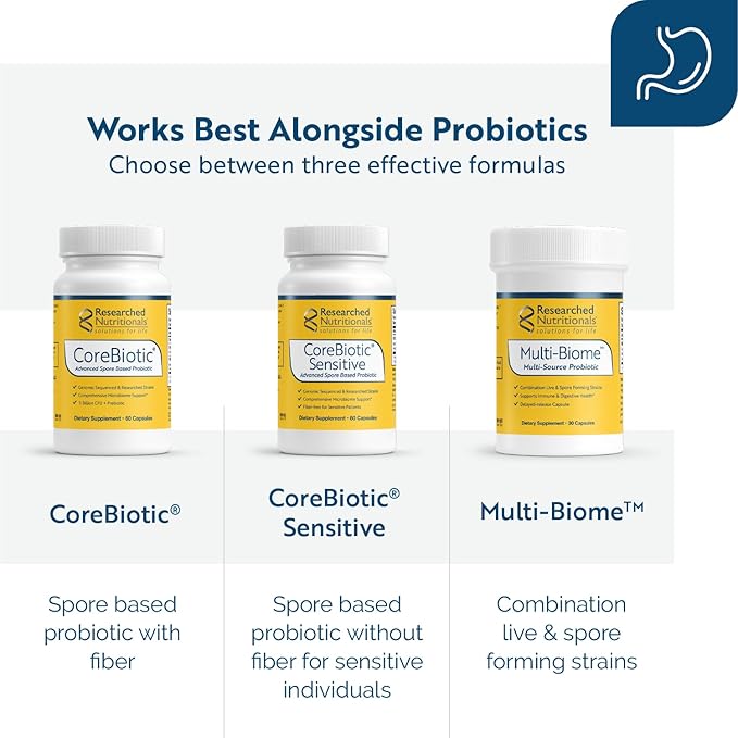 - Support a Thriving Microbiome - Improves microbiome balance in the digestive tract. This product is designed to work in conjunction with a probiotic (such as Multi-Biome or CoreBiotic probiotic gut health supplements) by nourishing the gastrointestinal tract to foster a healthy environment for a thriving microbiome.*