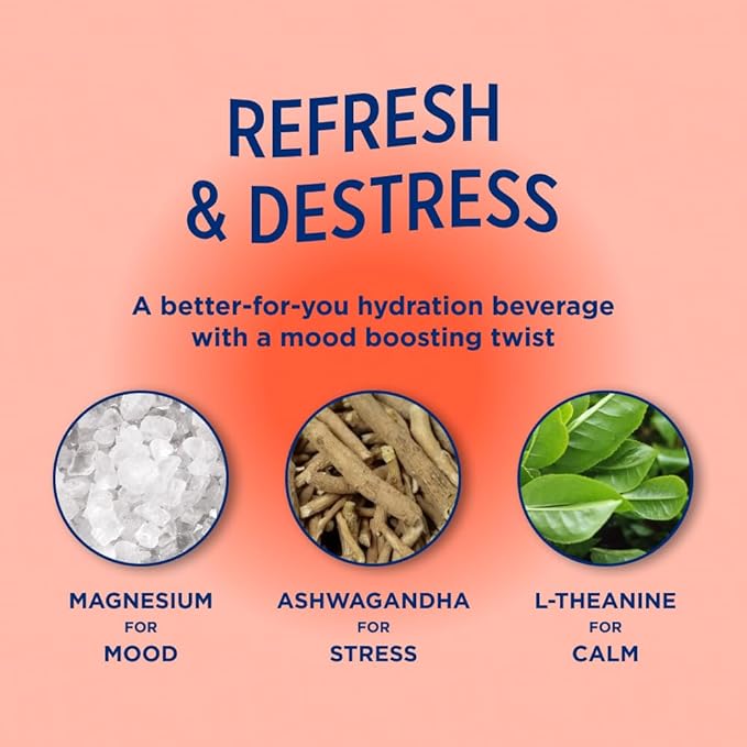 - HYDRATING ELECTROLYTES + ADAPTOGENS Formulated with 700mg of electrolytes and calming adaptogens like ashwagandha and L-theanine to support hydration, focus, and mood.