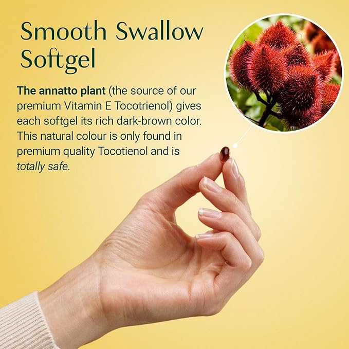 - Vitamin A & E: Delivers Vitamin A to support a youthful appearance and a robust immunity. Also boasts superior Vitamin E (Mixed Tocotrienols from the annatto plant of South America). This Vitamin E is a powerful antioxidant, shielding your cells against free radical damage. This, when taken with Vitamin D, helps to support a healthy complexion, a fortified immunity and stronger bones.