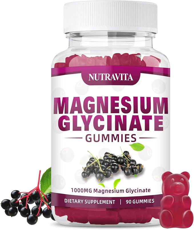 Magnesium Glycinate Gummies 1000mg with Magnesium L-Threonate,Chelated Magnesium Potassium Complex Supplement with VitD, B6, CoQ10, Calcium,Supports for Memory, Calm, Mood - 90 Elderberry Gummies