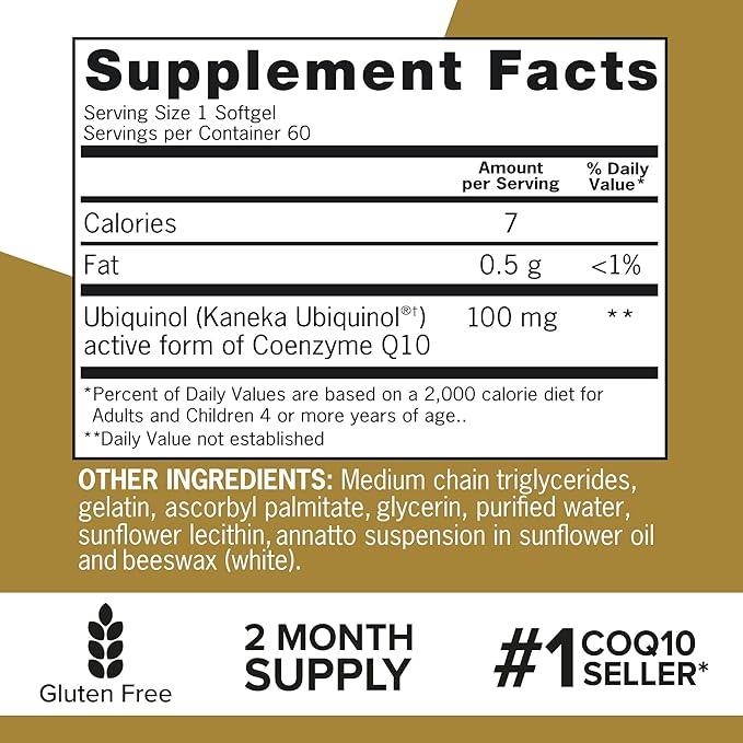 Qunol Ubiquinol CoQ10 100mg Softgels, Ubiquinol - Active Form of Coenzyme Q10, Antioxidant for Heart Health, Healthy Blood Pressure Levels, Beneficial to Statin Users, 60 Count