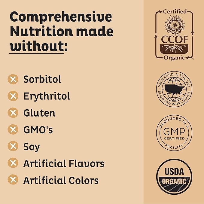 - Responsibly Sourced: Nearly every ingredient is certified organic and free of gluten, dairy, soy, hormones, artificial sweeteners, colors, and GMOs. Made with USDA and CCOF certified ingredients.