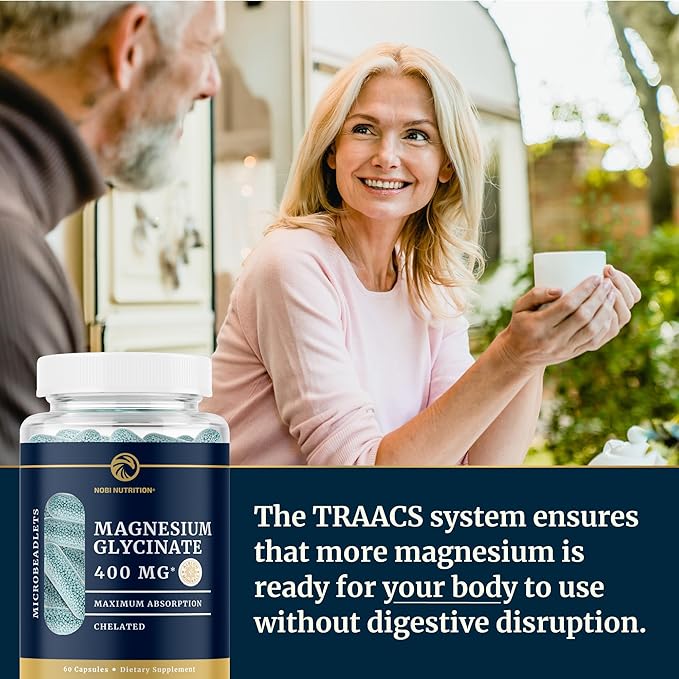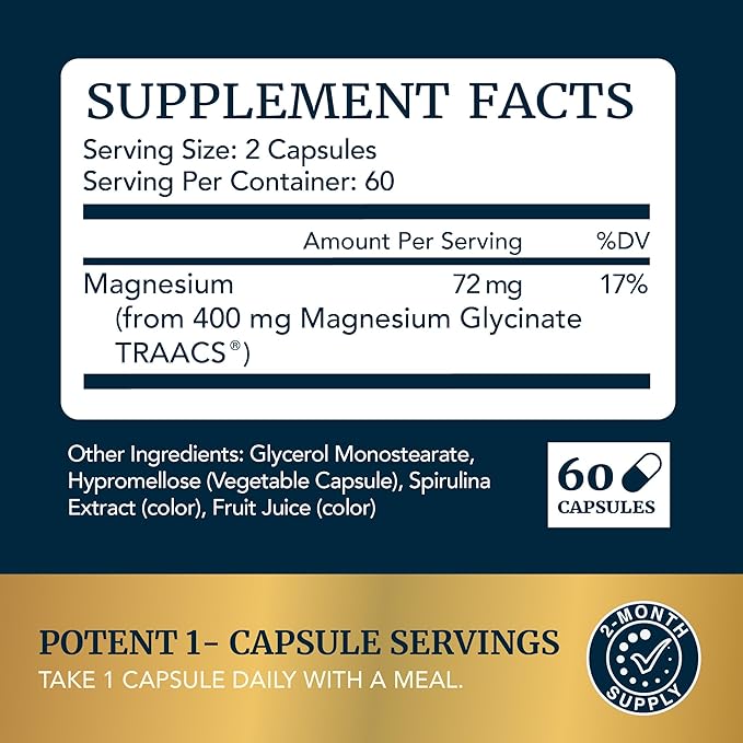 Magnesium Glycinate Supplement | Advanced Microbeadlets | Chelated for Maximum Absorption | 400mg Magnesium Bisglycinate Powder Per Serving | TRAACS Chelate System | for Women & Men | 60 Capsules