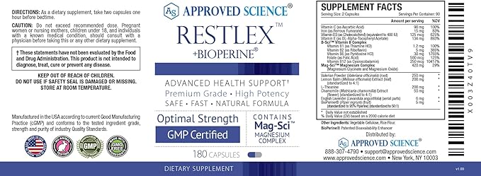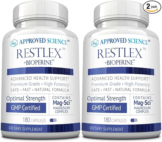 Approved Science Restlex - 420 mg Magnesium Glycinate Blend, L-theanine 200 mg - 360 Capsules - 2 Bottles