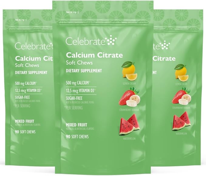 Celebrate Vitamins Bariatric 500mg Calcium Citrate Soft Chews with 500 IU Vitamin D3 – Essential for Gastric Bypass Patients & Bone Health - Sugar & Gluten Free, Fruit (270 Chews)