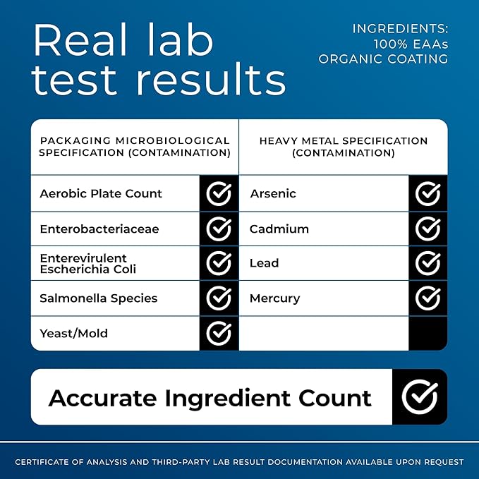 - ๐ง๐ฒ๐๐๐ฒ๐ฑ & ๐ง๐ฟ๐๐๐๐ฒ๐ฑ ๐๐ป๐ด๐ฟ๐ฒ๐ฑ๐ถ๐ฒ๐ป๐๐ - Our non-GMO, gluten-free, dairy-free, EAA tablets are ๐ณ๐ผ๐ฟ๐บ๐๐น๐ฎ๐๐ฒ๐ฑ ๐ถ๐ป ๐๐ต๐ฒ ๐จ๐ฆ๐ in a registered, approved, inspected state-of-the-art facility, with strict adherence to Good Manufacturing Practices (GMP). For optimal quality, all of our supplement products are ๐ฏ๐ฟ๐ฑ ๐ฝ๐ฎ๐ฟ๐๐ ๐๐ฒ๐๐๐ฒ๐ฑ ๐ณ๐ผ๐ฟ ๐พ๐๐ฎ๐น๐ถ๐๐, ๐ฝ๐๐ฟ๐ถ๐๐, ๐ฝ๐ผ๐๐ฒ๐ป๐ฐ๐, and ๐ฐ๐ผ๐ป๐๐ฎ๐บ๐ถ๐ป๐ฎ๐๐ถ๐ผ๐ป.