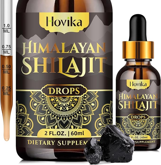 - EASY TO USE: Hovika shilajit liquid drops are formulated to provide 700 mg per serving, including natural shilajit resin 600 mg, and 4 in 1 Ayurvedic Herb Blend 100 mg. Our Shilajit Oil comes in a convenient dropper bottle, making it effortless to incorporate into your daily routine. Simply dissolve 2 ml in warm water or your favorite drink to take control of your wellness or as directed by your physician