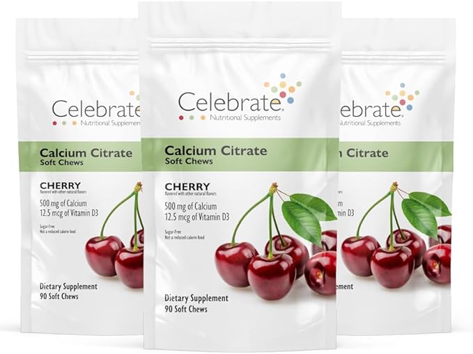 Celebrate Vitamins Bariatric 500mg Calcium Citrate Soft Chews with 500 IU Vitamin D3 – Essential for Gastric Bypass Patients & Bone Health - Sugar & Gluten Free, Cherry (270 Chews)