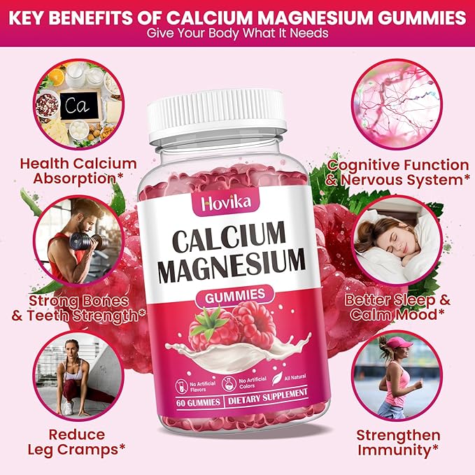 - Premium Ingredients - Hovika Calcium Magnesium Zinc Gummies are manufactured in accordance with highest standards. The calcium magnesium zinc d3 supplement is soy free, non-GMO, gluten-free and vegan-friendly. If you are not satisfied with our products for any reason, please feel free to contact us.*