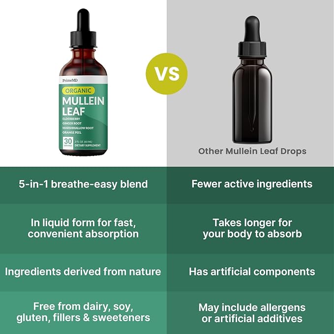 - Who is This For: Our Mullein leaf drops, combined with Echinacea, support gentle lung health. They’re formulated for daily wellness and breathing support that bring you comfort and clarity.