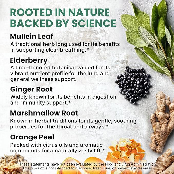 - How It Works: Mullein herb, alongside Echinacea, is particularly beneficial in colder seasons and has been widely used as a support for respiratory and digestive support.