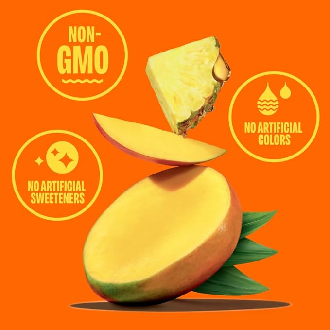 - STRAIGHT UP YUM: 100% juice with a splash of coconut water. A tropical twist of pineapple and mango