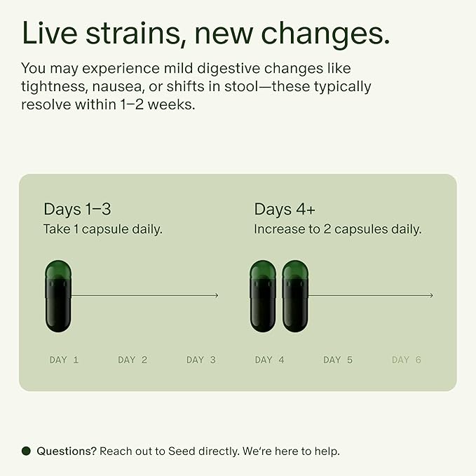 - Getting Started: If it's your first time taking DS-01, or its been more than a week since your last dose, take 1 capsule daily for three days before moving on to 2 capsules daily. You may notice mild gastrointestinal discomfort or changes in digestion. Any discomfort typically resolves in 1-2 weeks.