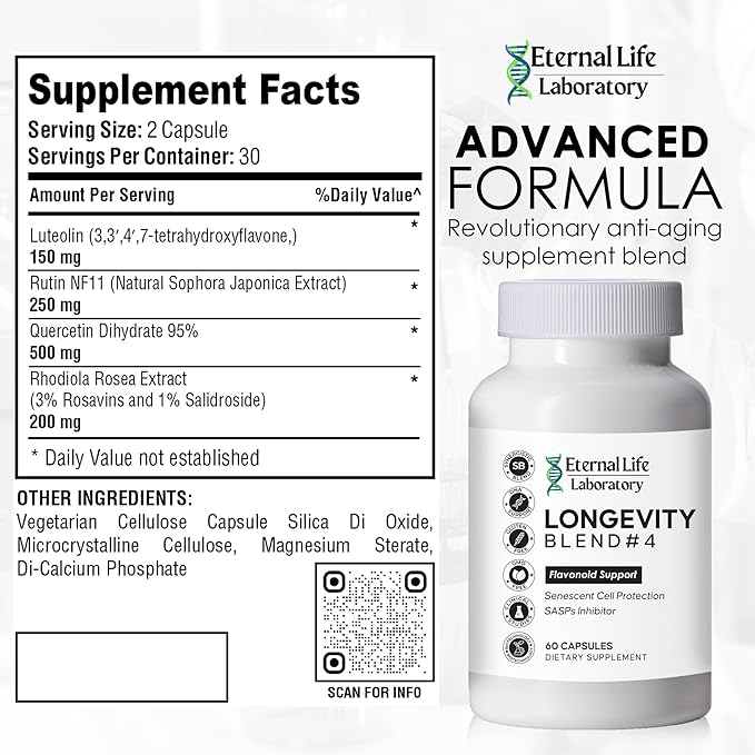 - Longevity Blend # 4 This Flavanoid Support is a dietary supplement that combines Luteolin, Rutin, Quercitin and Rhodiola Rosea extract these compounds work synergistically with each other increasing your overall health and longevity. This dynamic blend not only is a potent anti-aging compound but also stands as a robust immune support supplement with a focus on cellular defense.