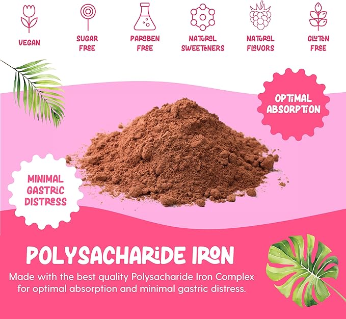 - 💪 20mg Polysaccharide Iron Complex: Our formula boasts a powerful 20mg of Polysaccharide Iron Complex, a gentle and easily absorbable source of iron, promoting optimal iron levels for sustained energy and vitality.