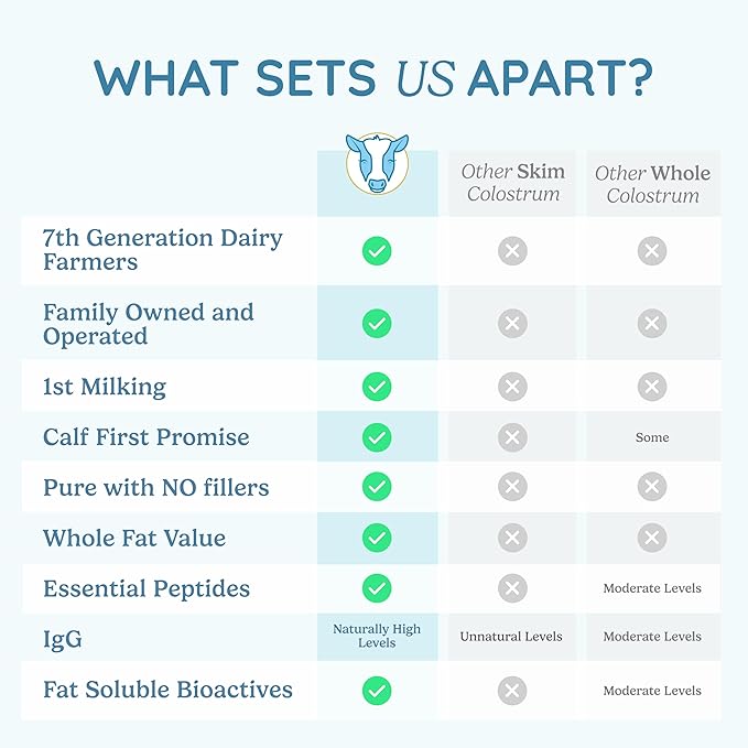 - The WonderCow Promise: We source our bovine colostrum from sustainable, reputable farms that use ethical and humane farming practices. Our product contains no artificial ingredients, sweeteners, dyes, additives, or fillers - just pure, high-quality colostrum powder. Additionally, we follow our Calf-First Promise, ensuring that the newborn calves receive the colostrum they need before we collect any excess. This means that our colostrum is not only effective, but also sustainable and ethical.