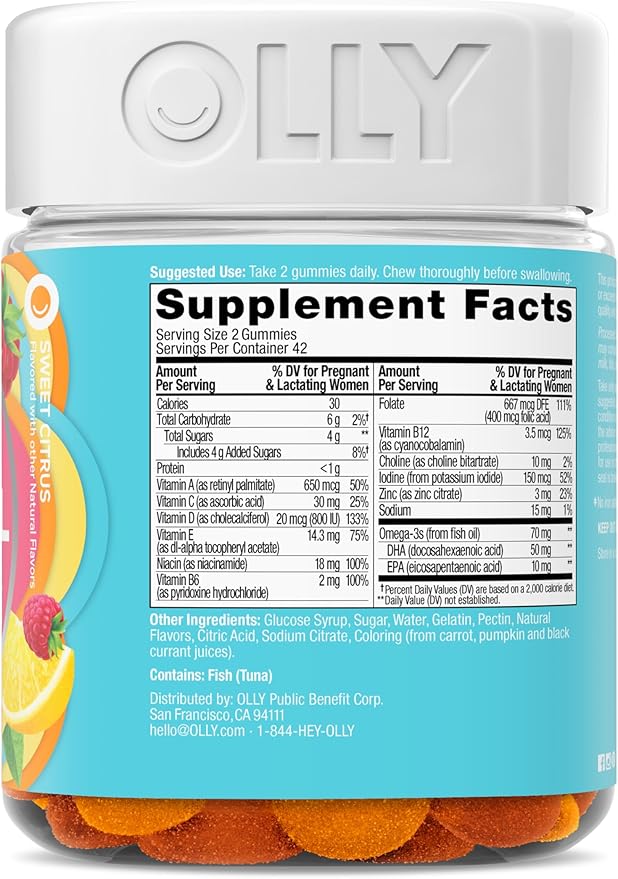 - DELIGHTFULLY TASTY: OLLY Prenatal Multi gummies are a delicious blend of raspberry and citrus fruit flavors with other natural flavors