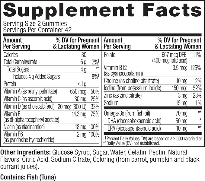 - THE GOODS INSIDE: This multi delivers the good stuff to your precious cargo. Folic Acid is more important now than ever to support the growth and development of your little one, along with Vitamin A for baby's healthy eye development*