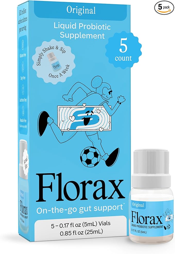 Florax - Liquid Probiotic - On-The-go Gut Support for Women, Men, and Children - Vegan, Gluten Free, Lactose Free, Soy Free and Preservative Free - Original Flavor - 5 Vials