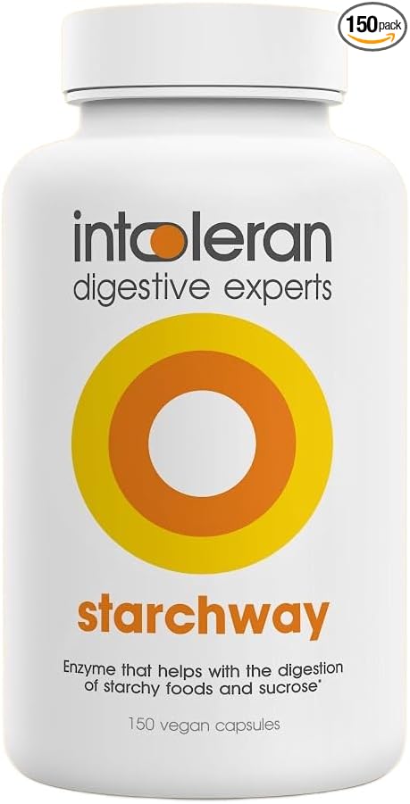 Starchway Digestive Enzymes - 150 capsules | Supplement for Starch & Sucrose Intolerance | Helps Digest Sugars & Starchy Foods | Invertase & Gluco-Amylase Enzymes | Pure & Vegan | Low FODMAP