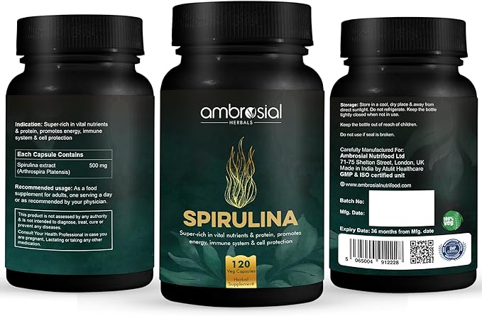AMBROSIAL Spirulina Capsules 500 mg per (Pack of 1-120 Capsules)